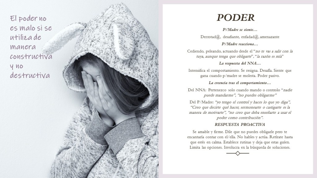 Nos pasa a las personas adultas y, por supuesto, a nuestras crías, pequeñas, medianas o en plena adolescencia. A más pequeños mejor percepción y peor interpretación… y no, no es que quieran fastidiarnos es que su desarrollo aún no les permite según qué cosas (ese sería otro tema) y de ahí su “mal comportamiento”. Por ejemplo, cuando Marta enfadada se va a su habitación y le grita a su madre `te odio´ lo que ha interpretado es que no tiene tiempo para ella, quizás que no la quiere, lleva días sin prestarle atención… siente que ha dejado de pertenecer, de ser importante para ella. En realidad, lo que Marta está diciendo es que la necesita, aunque su forma de hacerlo no sea la más correcta. La creencia equivocada de Marta es “pertenezco, soy importante, solo cuando está para mí”.